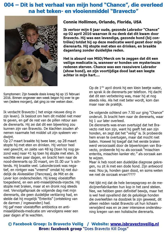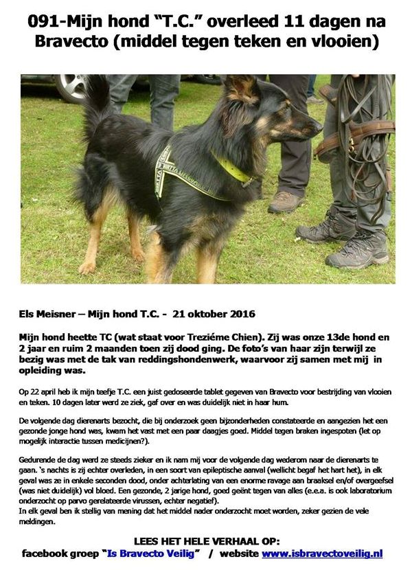 * Heeft uw hond ook ernstige bijwerkingen gehad van het giftige anti-teken/vlooien-middel “BRAVECTO” ? Schrijf uw verhaal op over wat