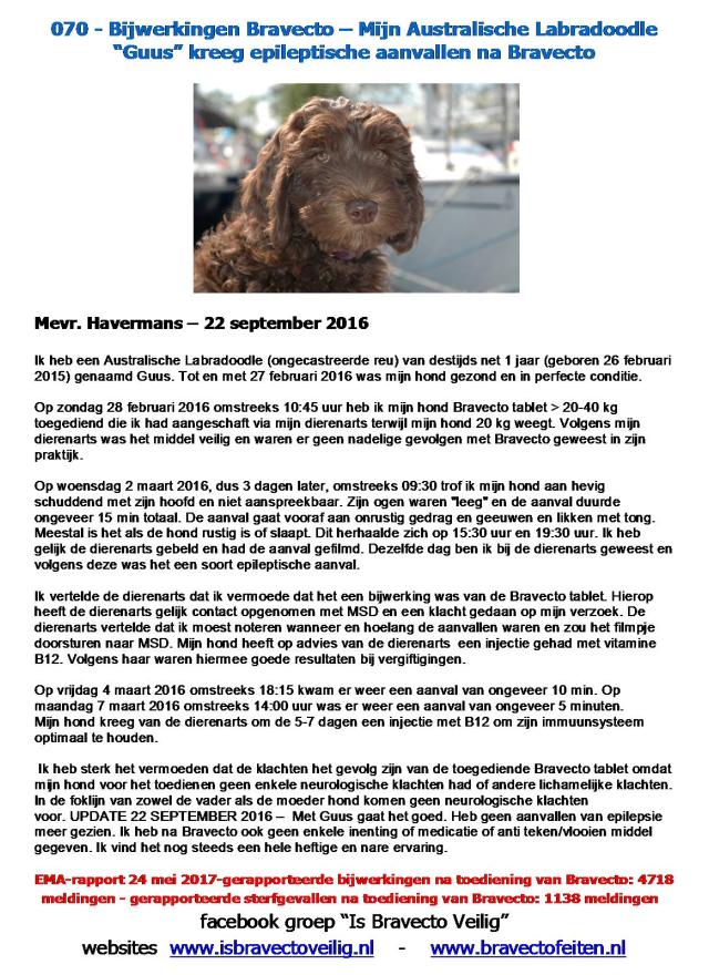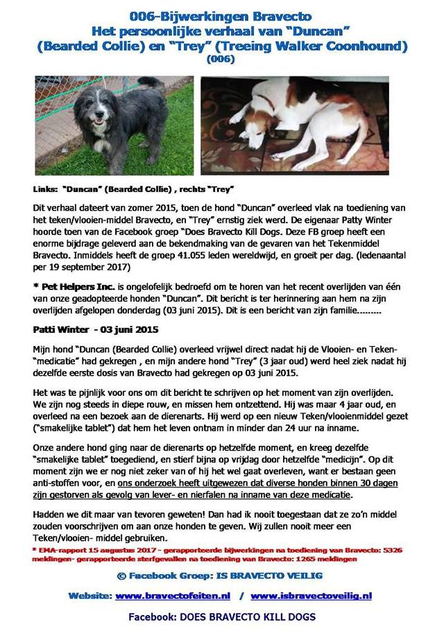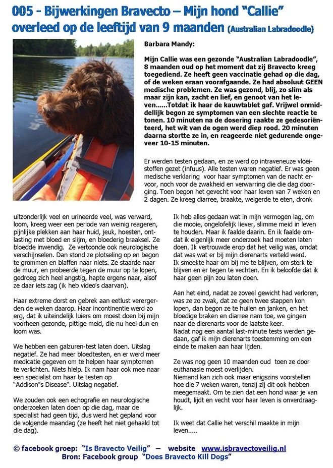 er met uw hond is gebeurd, en stuur het naar ons toe. Wij zullen het publiceren op onze website www.isbravectoveilig.nl en in de